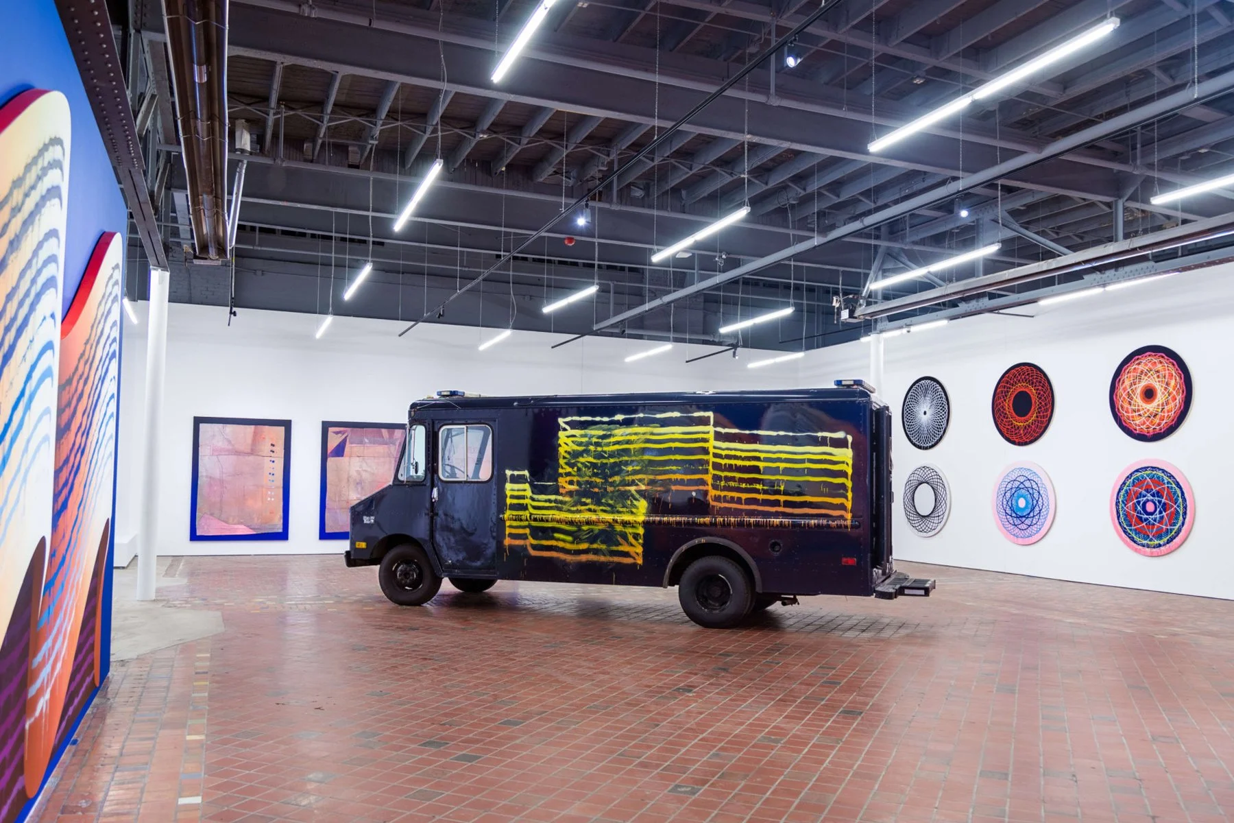 Entirely self-taught, Jason REVOK is known for pushing creative boundaries that began in the street. Refusing to be limited by the early recognition for his graffiti, REVOK allows only certain elements from graffiti culture to transition to his contemporary work—modest materials and industrial tools, ingenuity, his name—but his proclivity towards minimalism and post-painterly abstraction has become the driving force behind his practice. Examining the question of authorship from start to finish, REVOK has developed systematic yet imperfect tools to carry out his vision and has created a number of unmistakable bodies of work. His bold, balanced, geometry is heightened by the personal and imperfect sleight of the human hand.