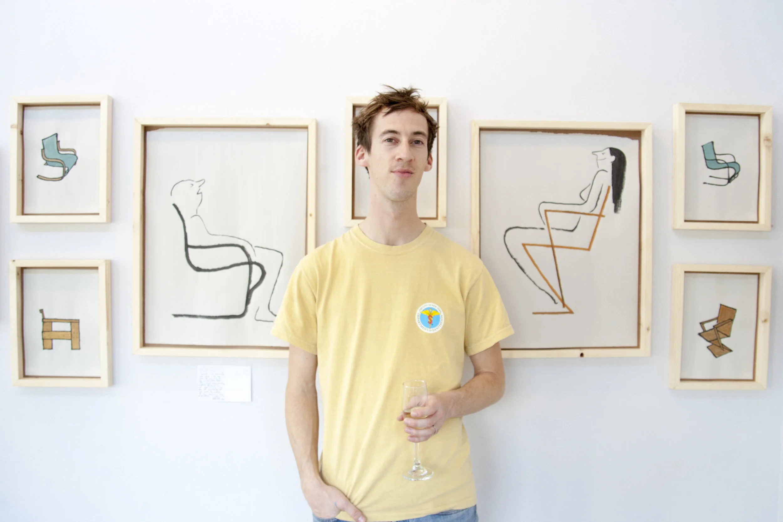 The sensation of travelling quite far to a remote location, which has a lot to offer, felt a bit like a treasure hunt. The dynamic in Marfa is very interesting, it's a great mix of people, and the architecture is fantastic. The town also seemed to have its own sort of mythology, from the Marfa Lights, to Donald Judd, to the movie Giant, etc. I spent a lot of time drawing the old school cars, the houses and the desert landscape. For a French person from Brittany, it felt like I was a long way from home! For my print I made a series of line drawings inspired by the chairs collected by Donald Judd. I drew lots of them from all angles but loved how they could be reduced to odd lines from the side.”